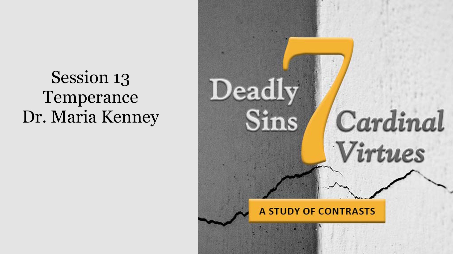 Dr. Maria Kenney leads us through our 13th session on the 7 Deadly Sins and 7 Cardinal Virtues discussing the virtue of Temperance.