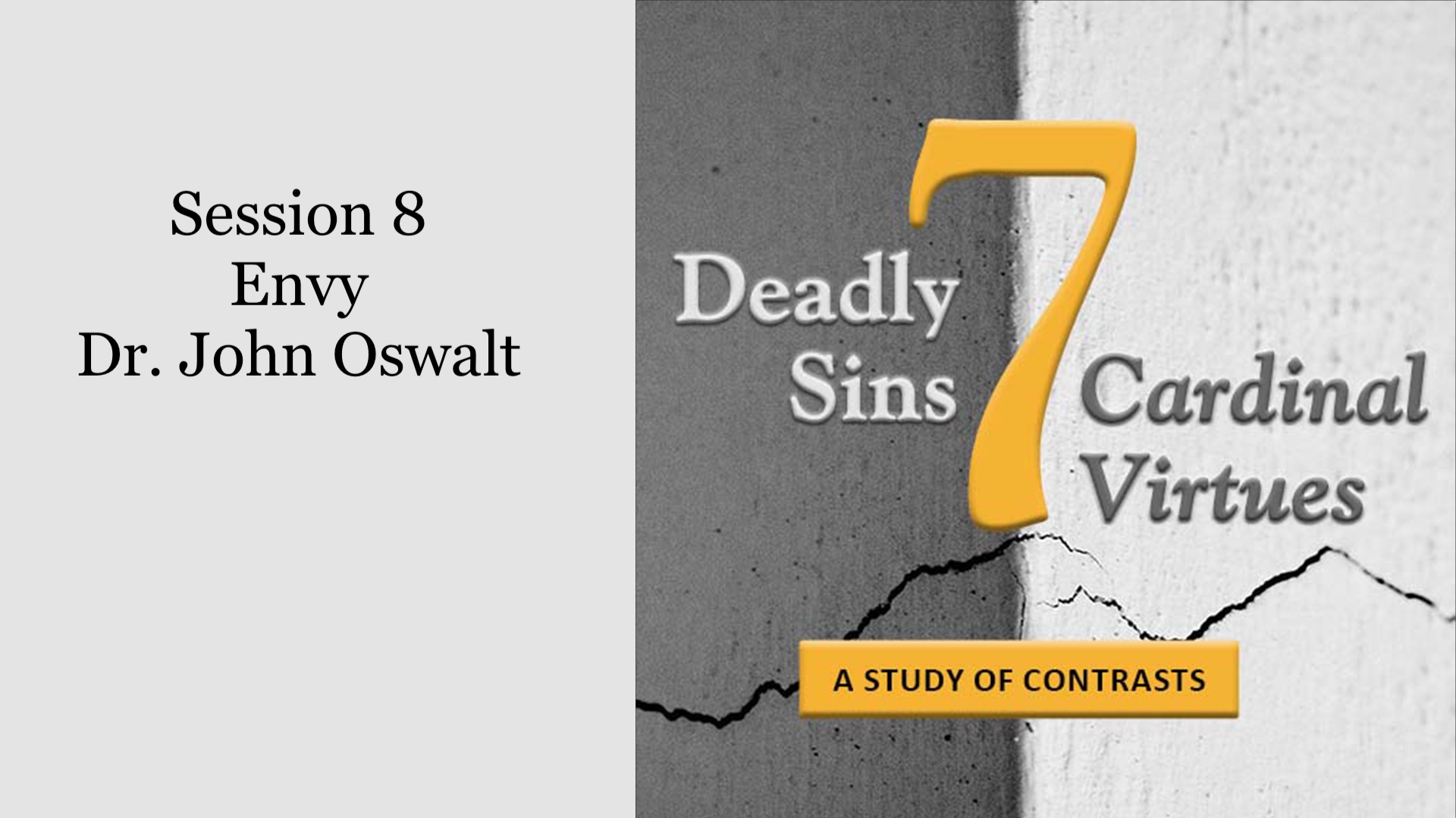 Dr. John Oswalt leads us through our 8th session covering the topic of Envy.