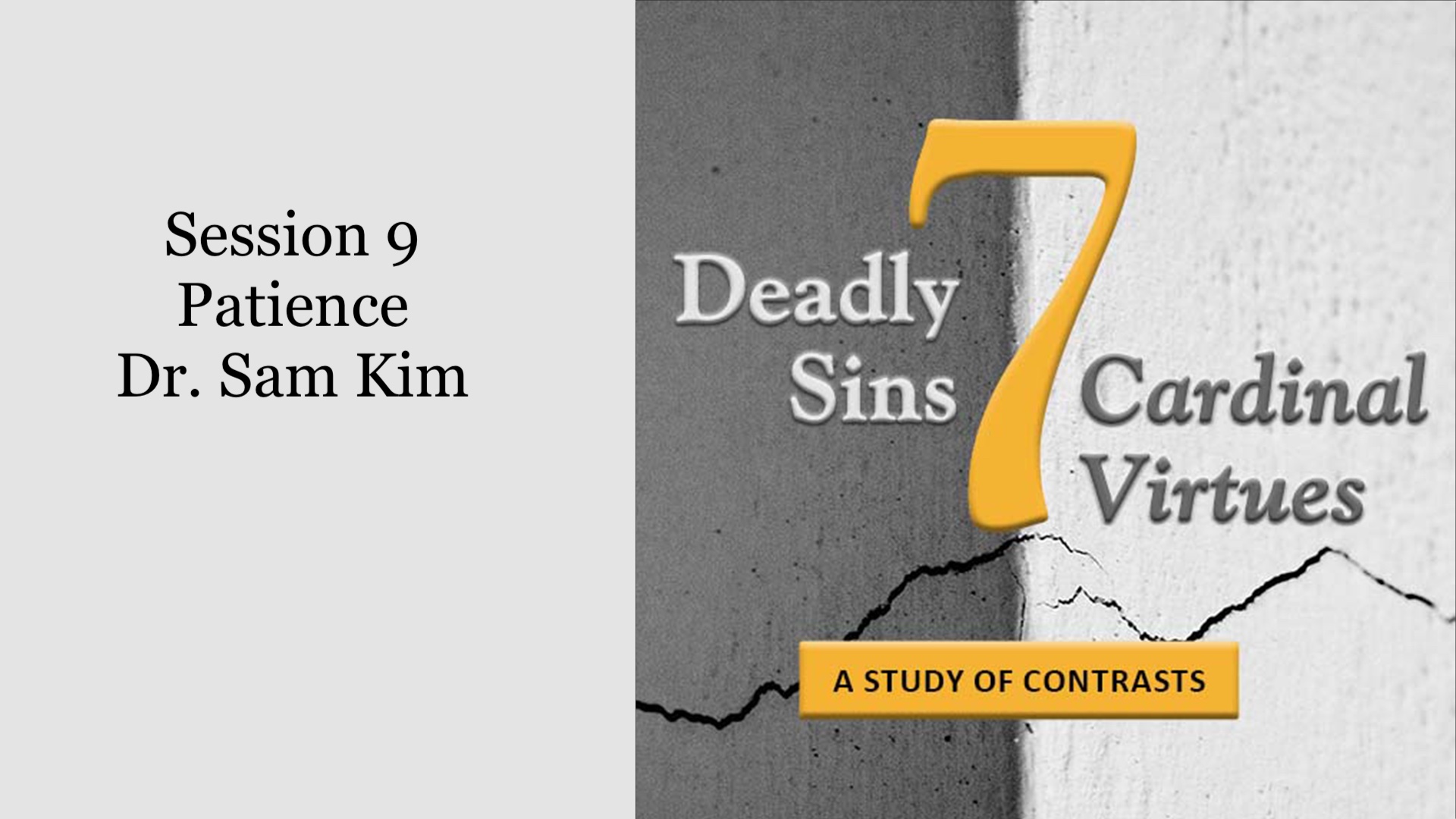 Dr. Sam Kim leads us through our 9th session covering the topic of Patience.
