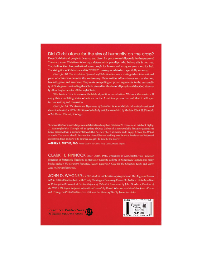 Grace for All: The Arminian Dynamics of Salvation is an updated and revised version of Grace Unlimited, a 1975 collection of scholarly articles assembled by the late Clark H. Pinnock of McMaster Divinity College.